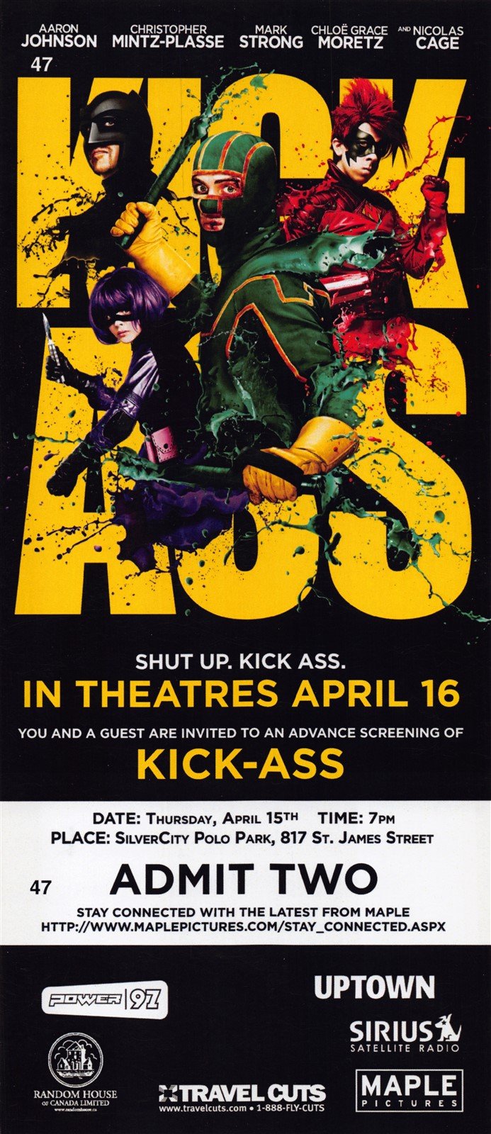 Aaron Johnson KICK-ASS Chloe Grace Moretz Nicolas Cage premiere ticket 2010