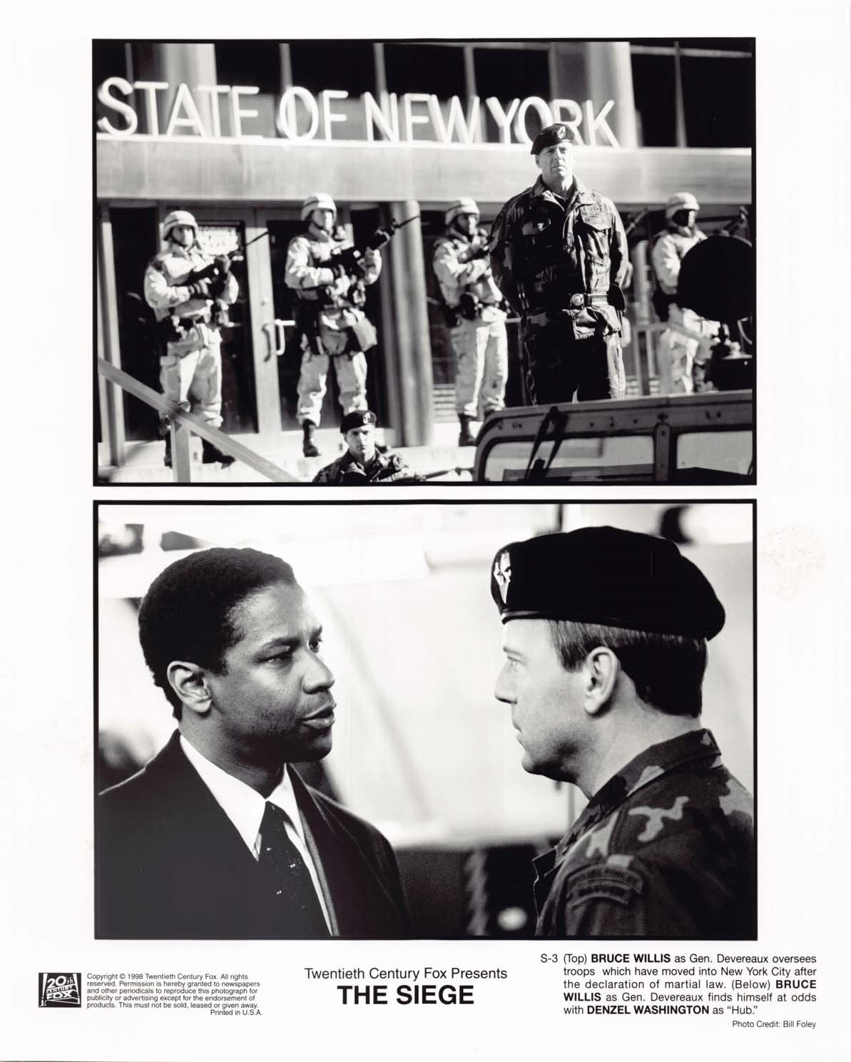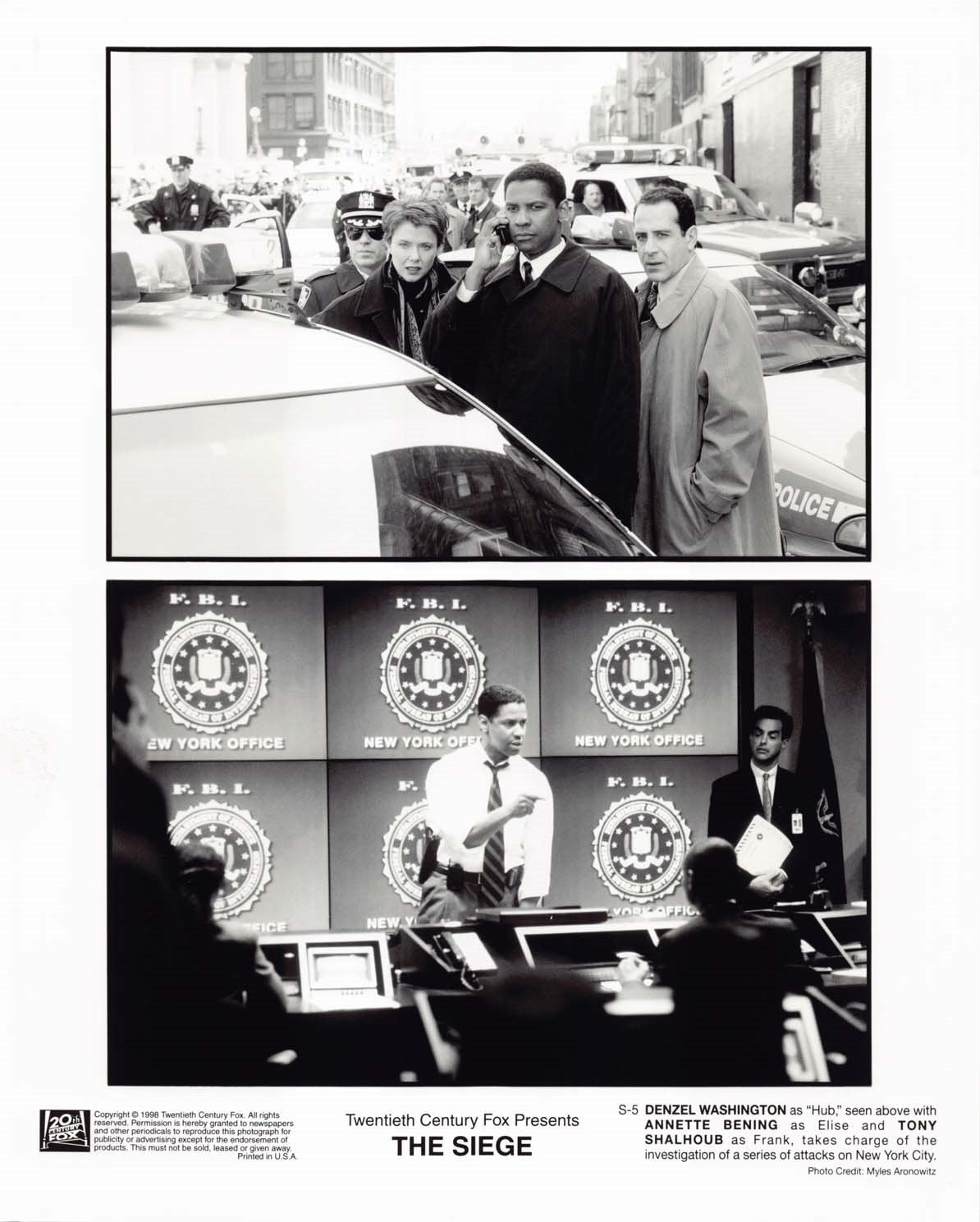 Five (5) excellent condition 1998 vintage Fox Pictures original promotional 8x10 press photos for THE SIEGE starring Denzel Washington and Annette Benning. These were mailed out to media and theater chains promoting the upcoming release of the film.