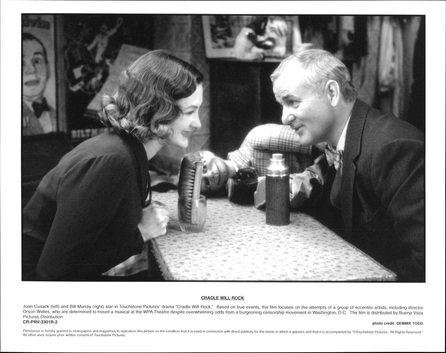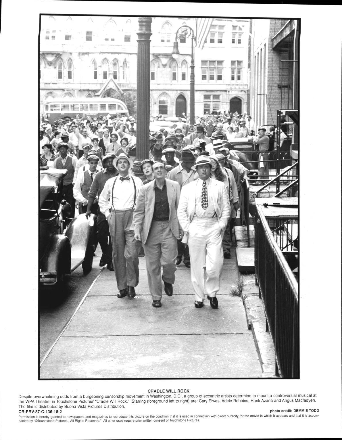 Three (3) excellent condition 1999 Buena Vista Pictures original promotional 8x10 press photos for CRADLE WILL ROCK starring Hank Azaria, Joan Cusack, Bill Murray, Susan Sarandon, John Cusack adn Reuben Blades. These were mailed out to media and theater chains promoting the upcoming release of the film.