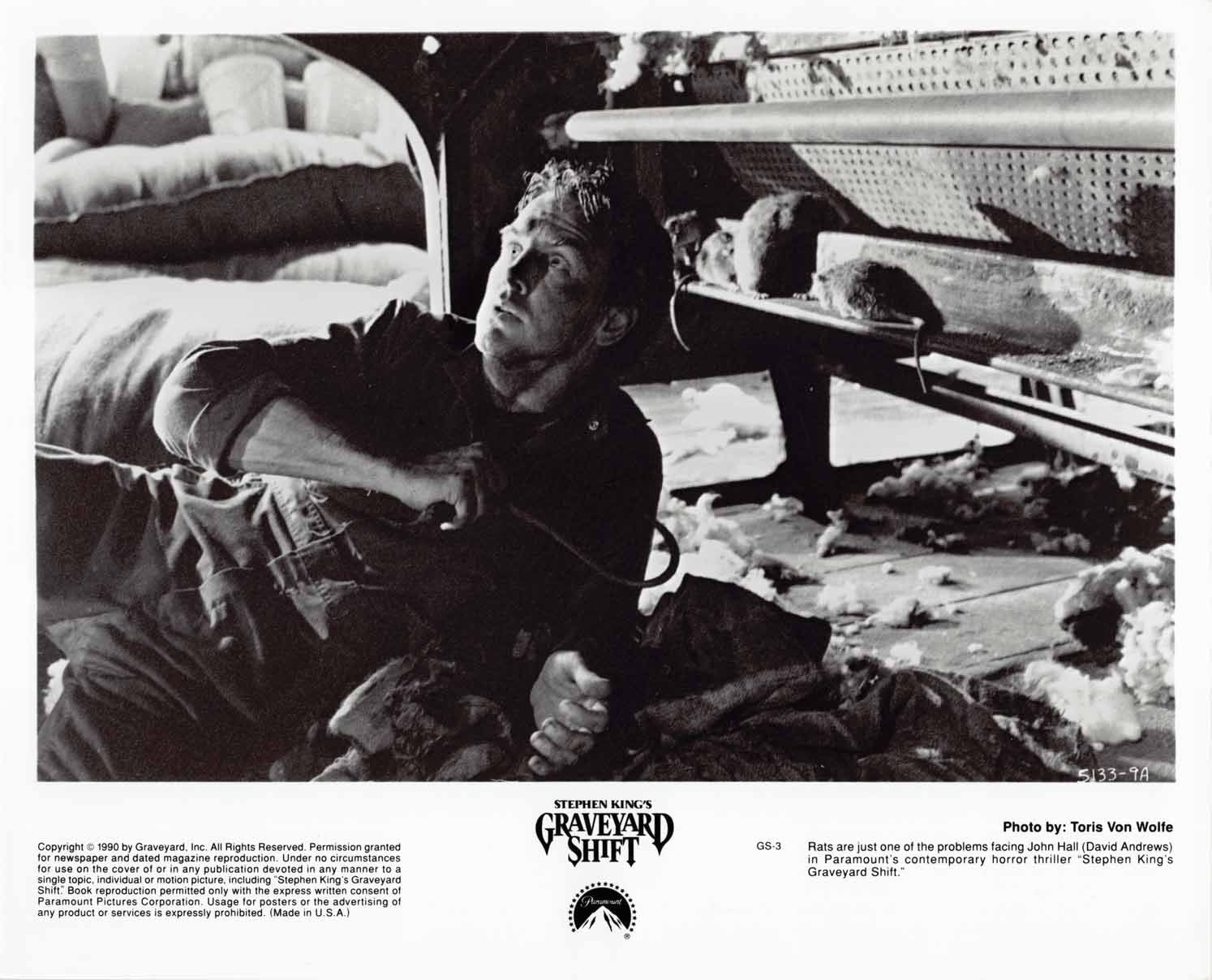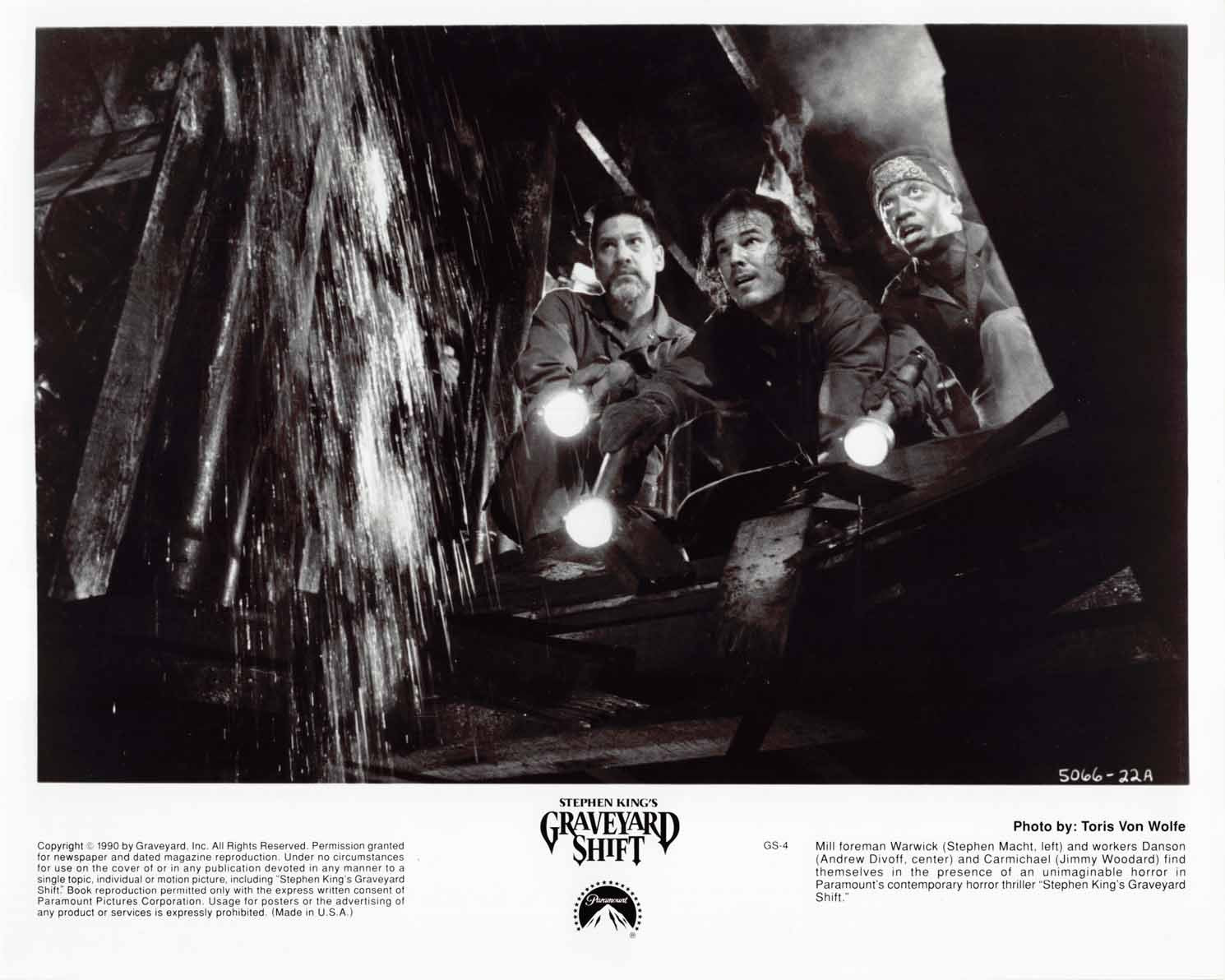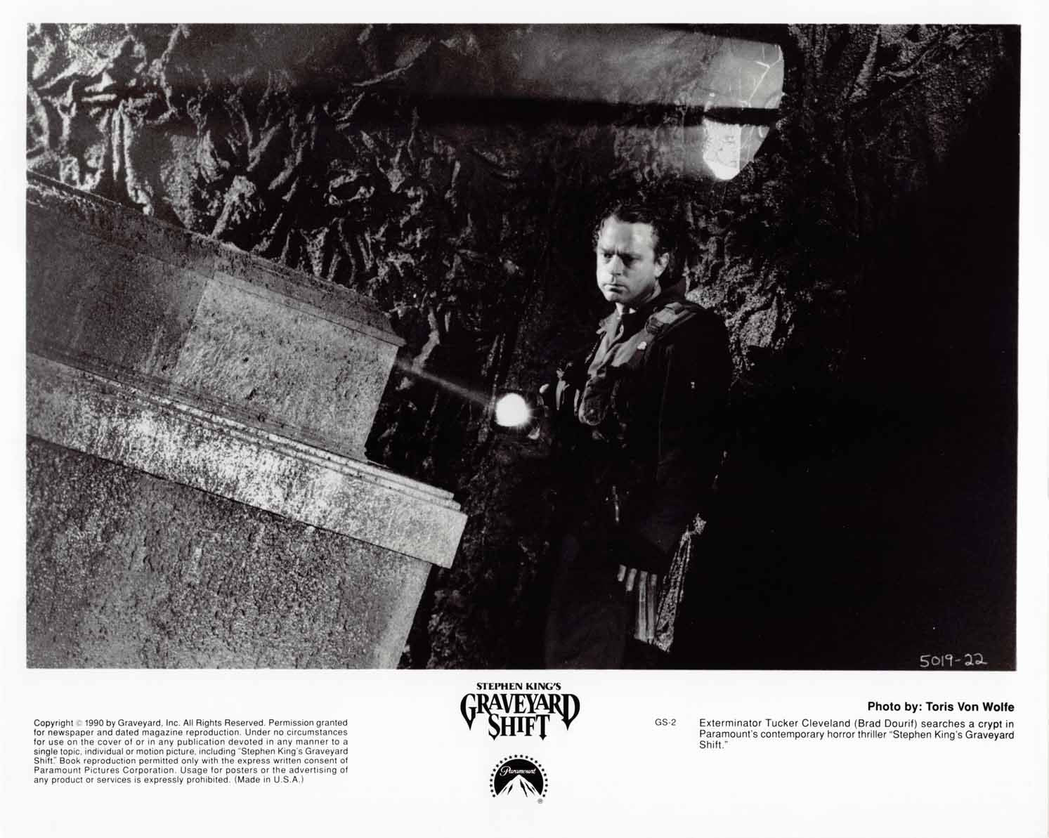 Five (5) excellent condition 1990 vintage Paramount Pictures original promotional 8x10 press photos for GRAVEYEARD SHIFT starring Brad Dourif. These were mailed out to media and theater chains promoting the upcoming release of the film.