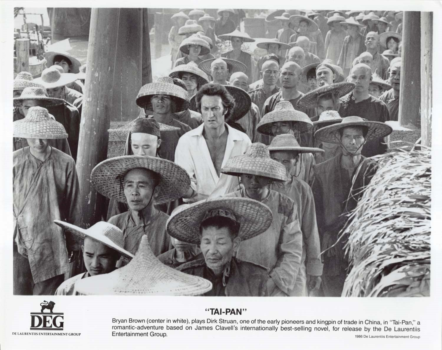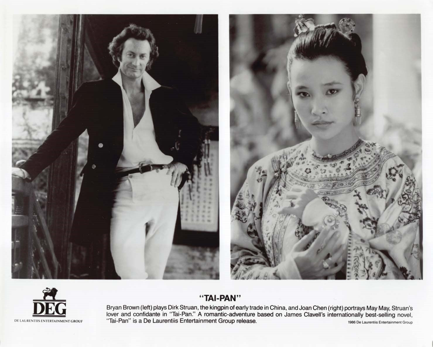 Nine (9) excellent condition 1986 vintage original promotional 8x10 press photos for TAI-PAN starring Joan Chen, Kyra Sedgwick and Bryan Brown. These were mailed out to media and theater chains promoting the upcoming release of the film.