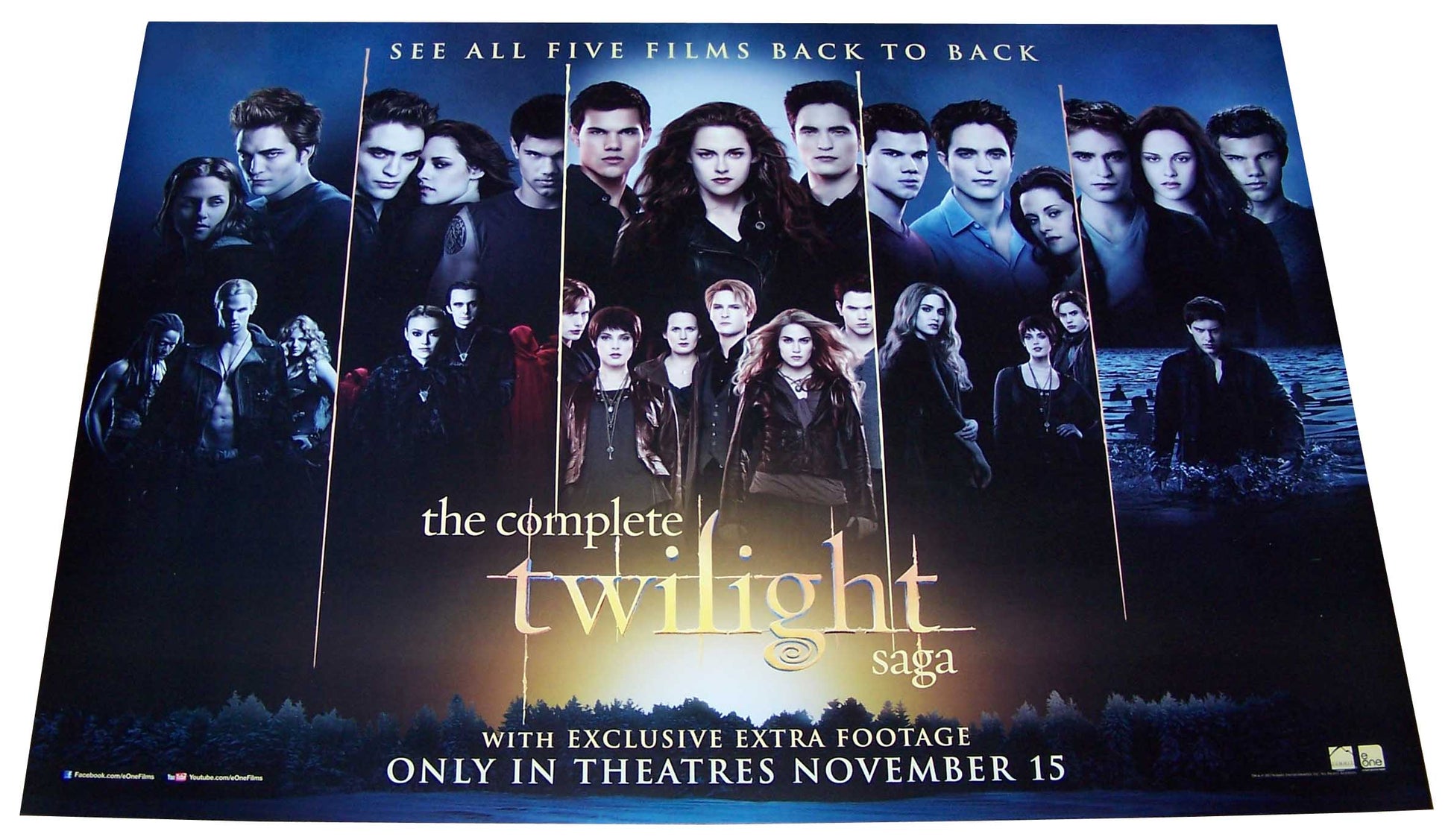 A mint RARE poster from the TWILIGHT SAGA MARATHON starring Kristen Stewart, Robert Pattinson, Peter Facinelli, Billy Burke, Elizabeth Reaser, Ashley Greene, Kellan Lutz, Dakota Fanning and Taylor Lautner.