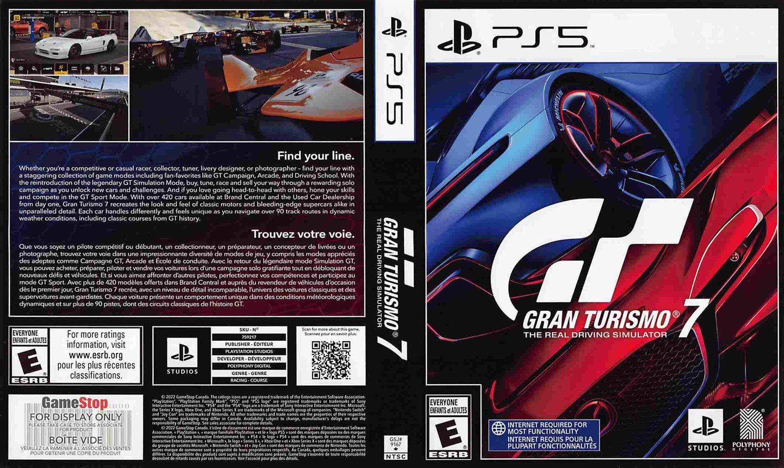 A mint promotional store display mock-art released to promote the upcoming release of GRAN TURISMO 7 on Sony PS5.