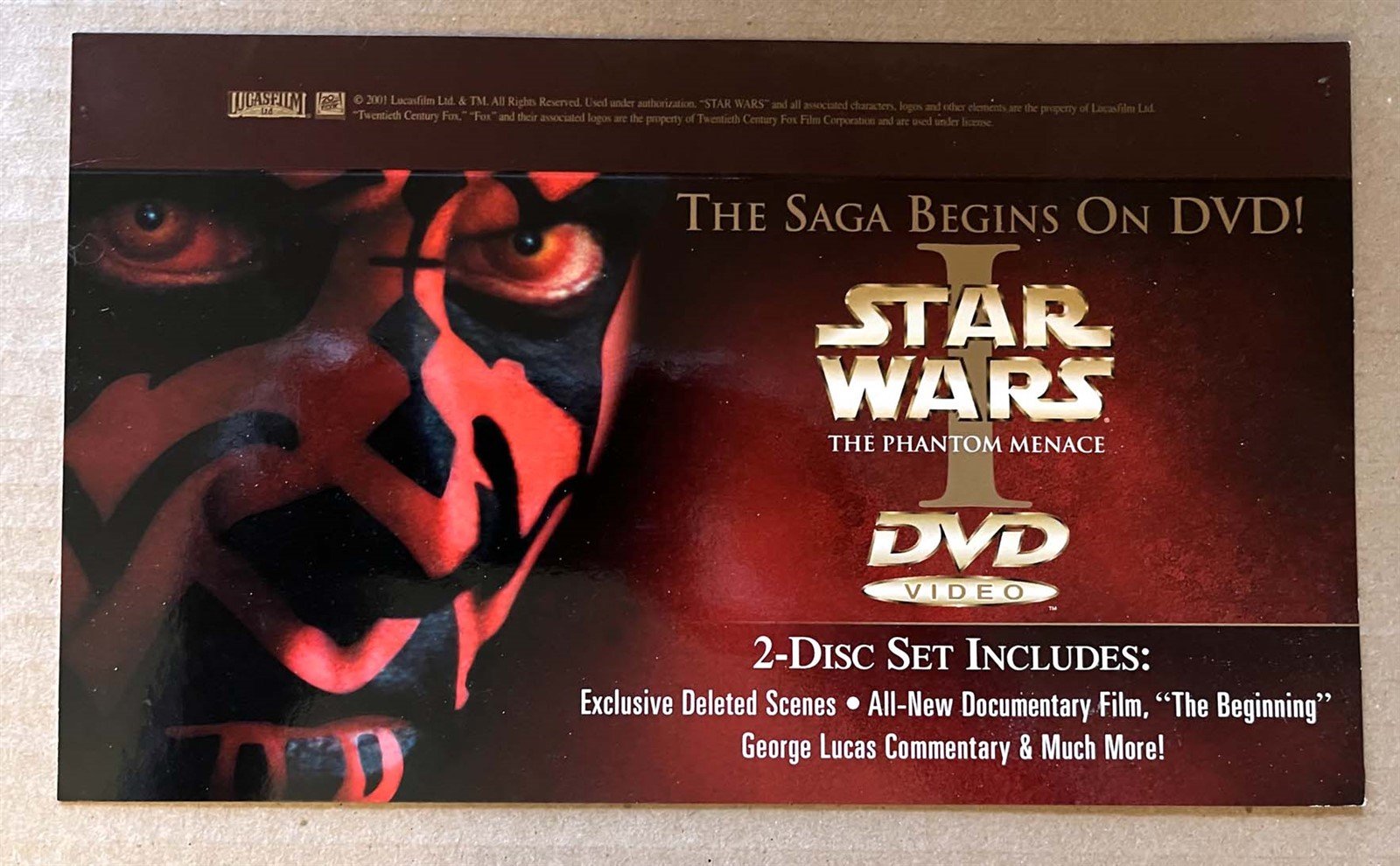 STAR WARS PHANTOM MENACE store display shelf talker DVD release