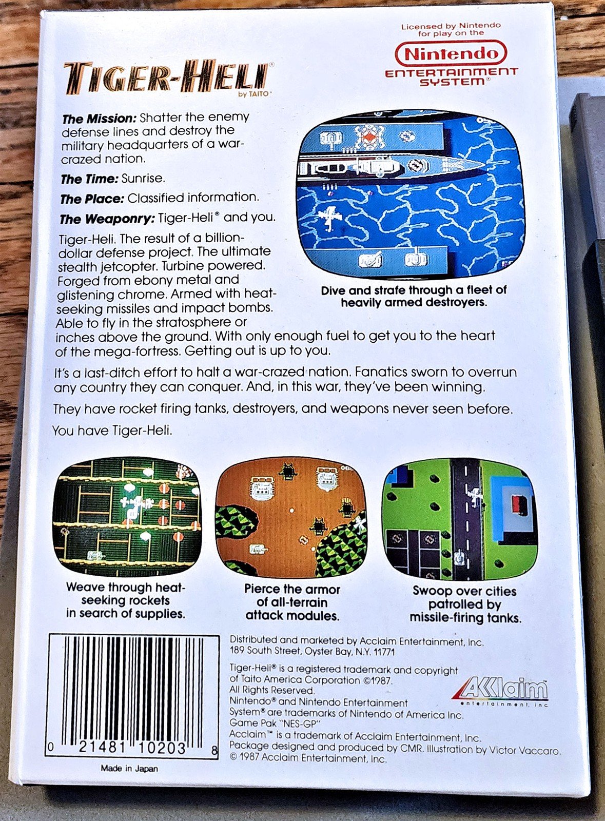 TIGER-HELI Nintendo NES Acclaim 1987, Game, Sleeve, Box, Used, Tested
