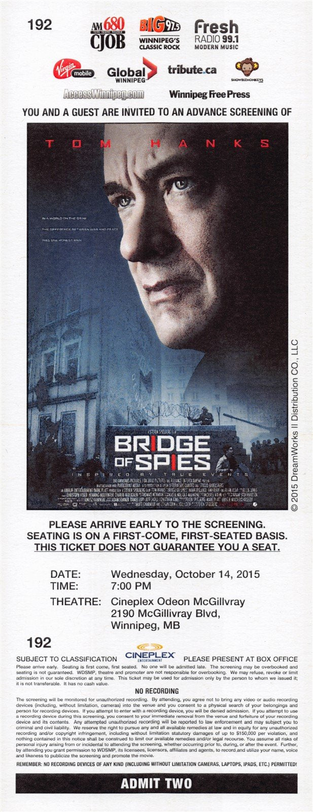 Tom Hanks BRIDGE OF SPIES original premiere ticket 2015
