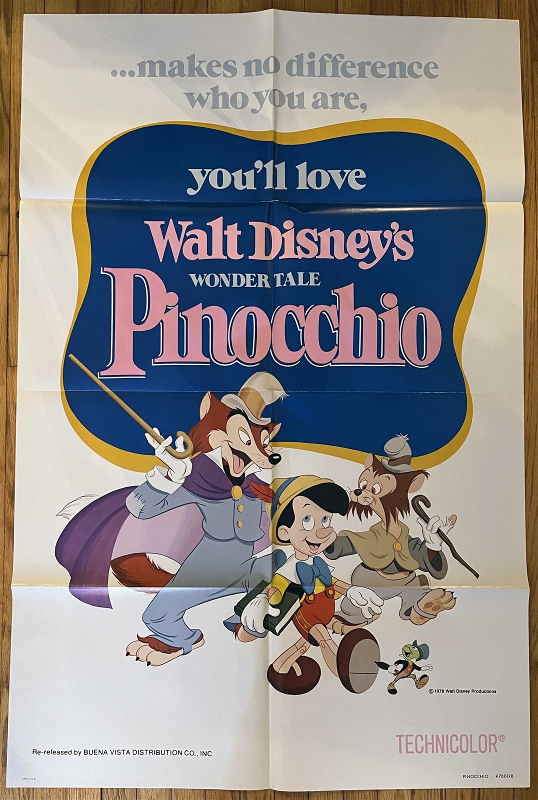 An excellent condition folded 1978 original reissue 1-sheet poster for Walt Disney's PINOCCHIO.