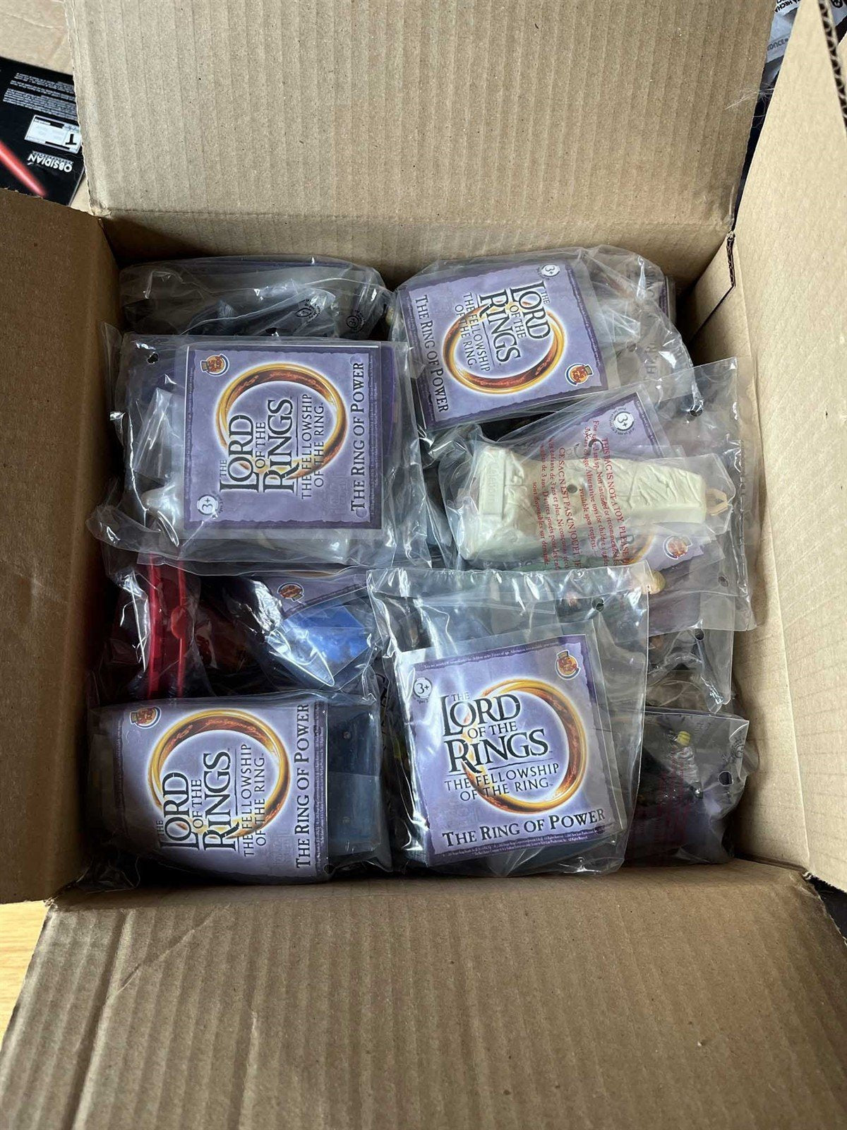 New, sealed in their packages. The figures all attach around the central Ring of Power. These toys are 20+ years old, some of the battery figures may no longer move or light up and are sold as is. Includes original BK shipping carton (as pictured).