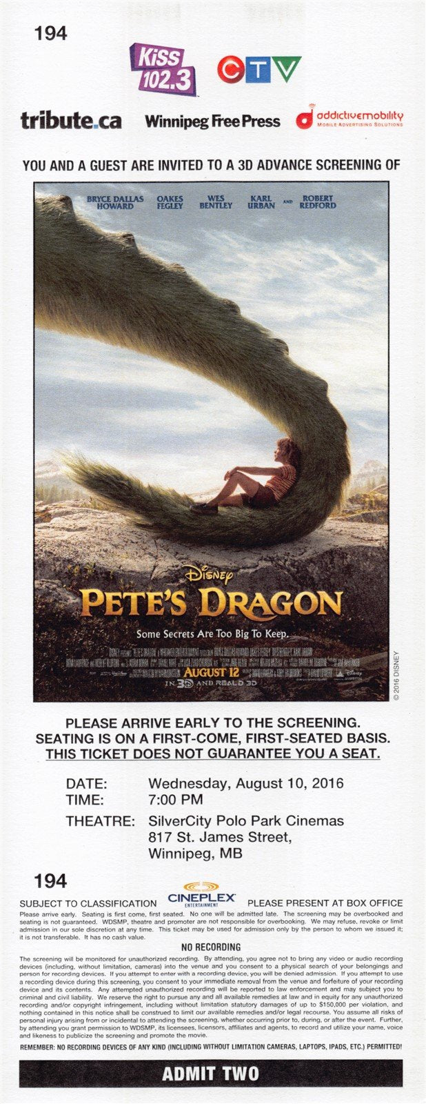 Bryce Dallas Howard PETE'S DRAGON Karl Urban premiere ticket 2016
