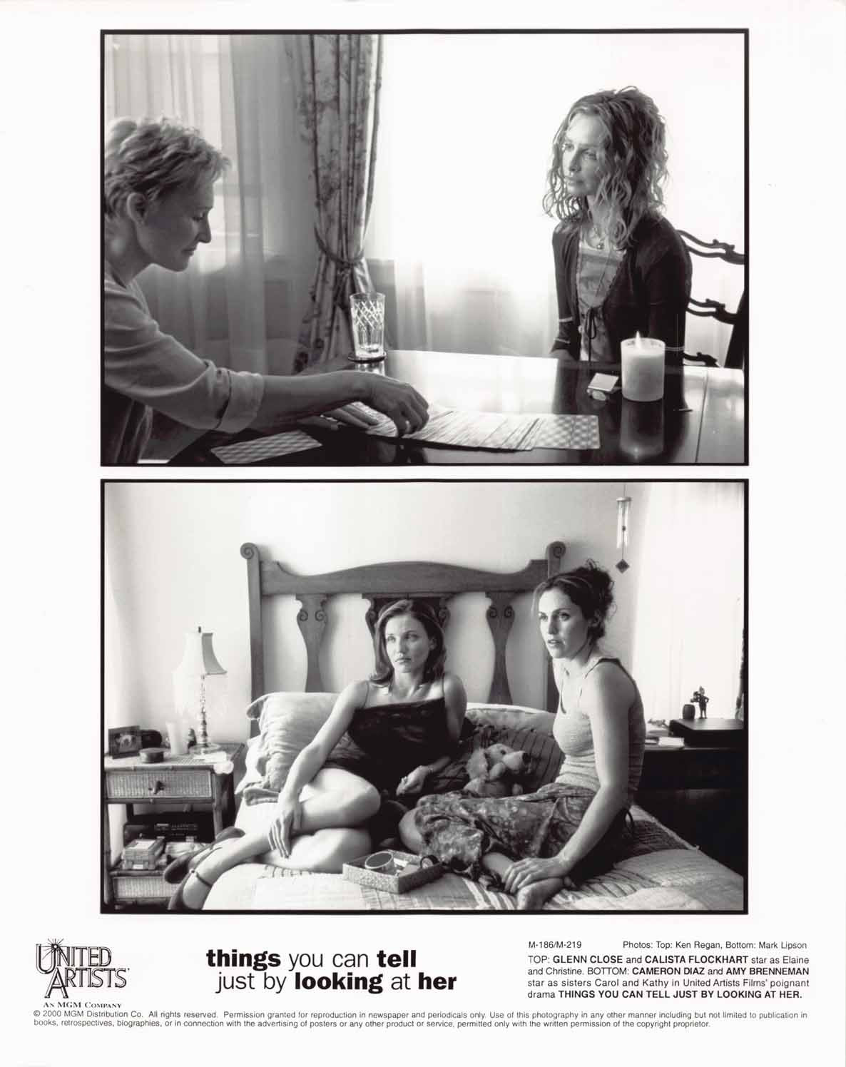 An excellent condition vintage 2000 United Artists Studios original promotional 8x10 press photo for THINGS YOU CAN TELL JUST BY LOOKING AT HER starring Calista Flockhart, Glenn Close, Amy Brenneman and Cameron Diaz. These were mailed out to media and theater chains promoting the upcoming release of the film.