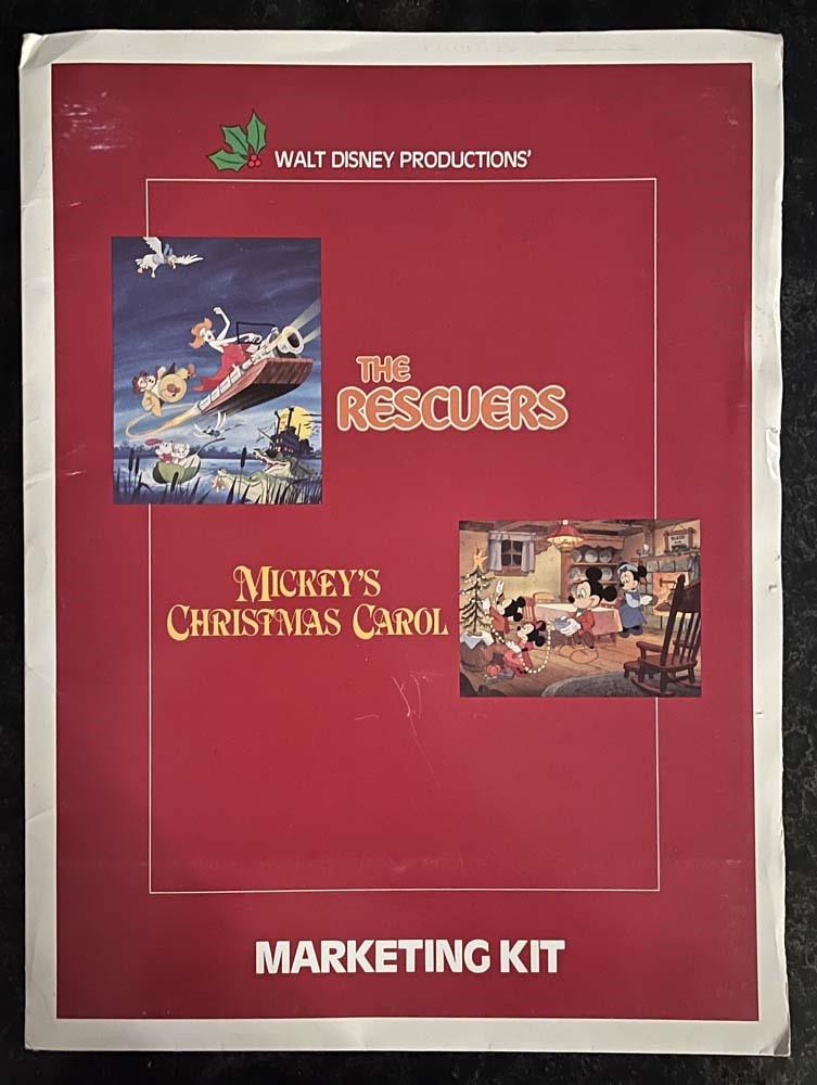 An original 1983 Walt Disney Pictures marketing kit for "THE RESCUERS"and "MICKEY'S CHRISTMAS CAROL".