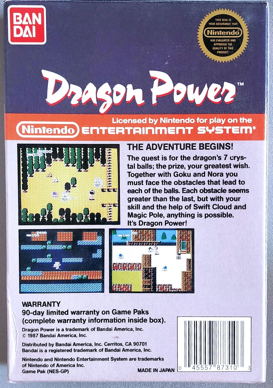 DRAGON POWER Nintendo NES Bandai 1988, Game, Sleeve, Box, Manual, Tested