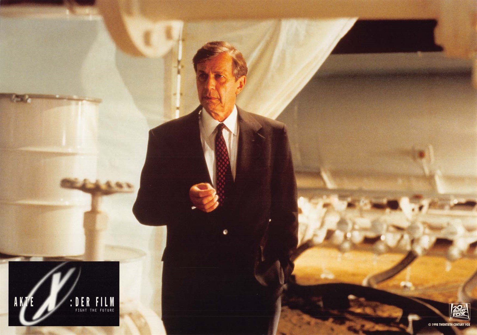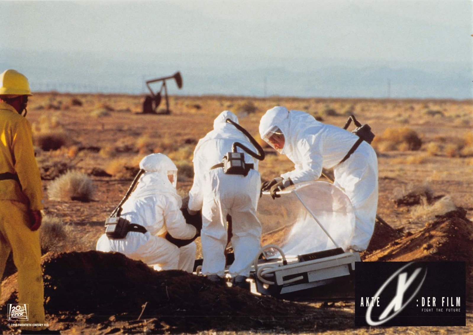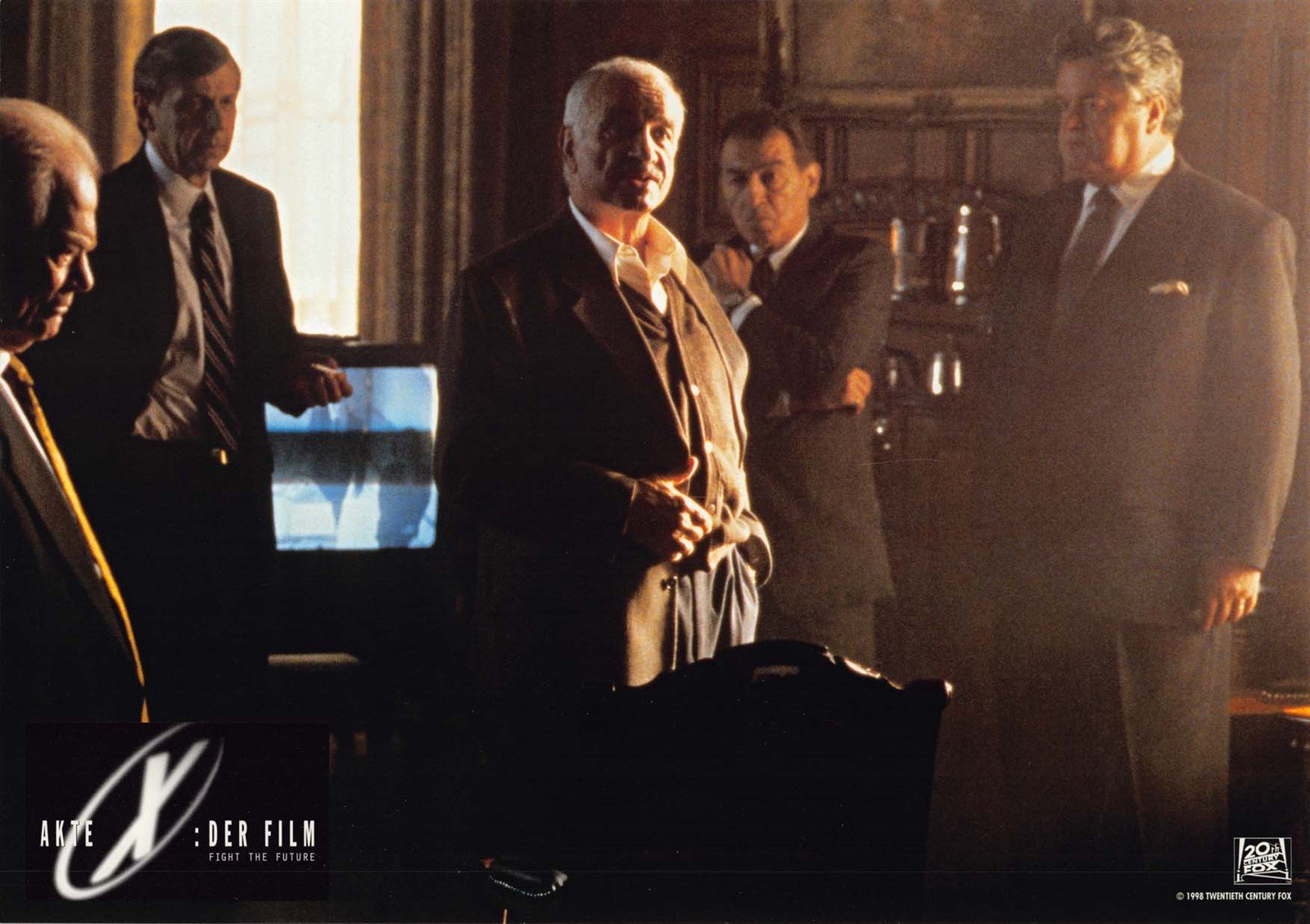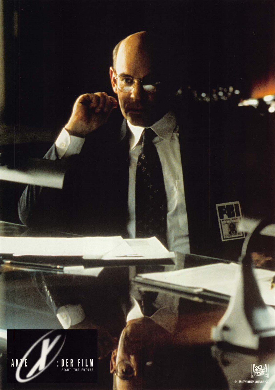 An excellent condition set (of 8) 1998 German lobby cards for Chris Carter's THE X-FILES: FIGHT THE FUTURE starring David Duchovny, Martin Landau, Blythe Danner and Gillian Anderson.