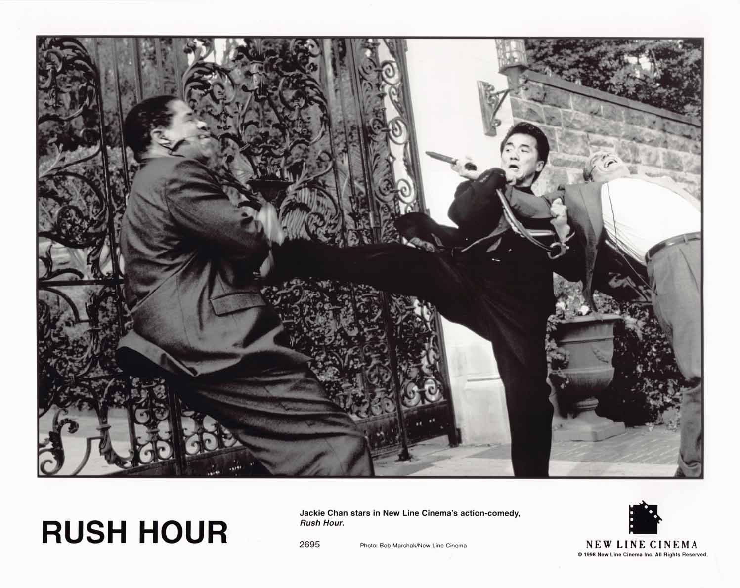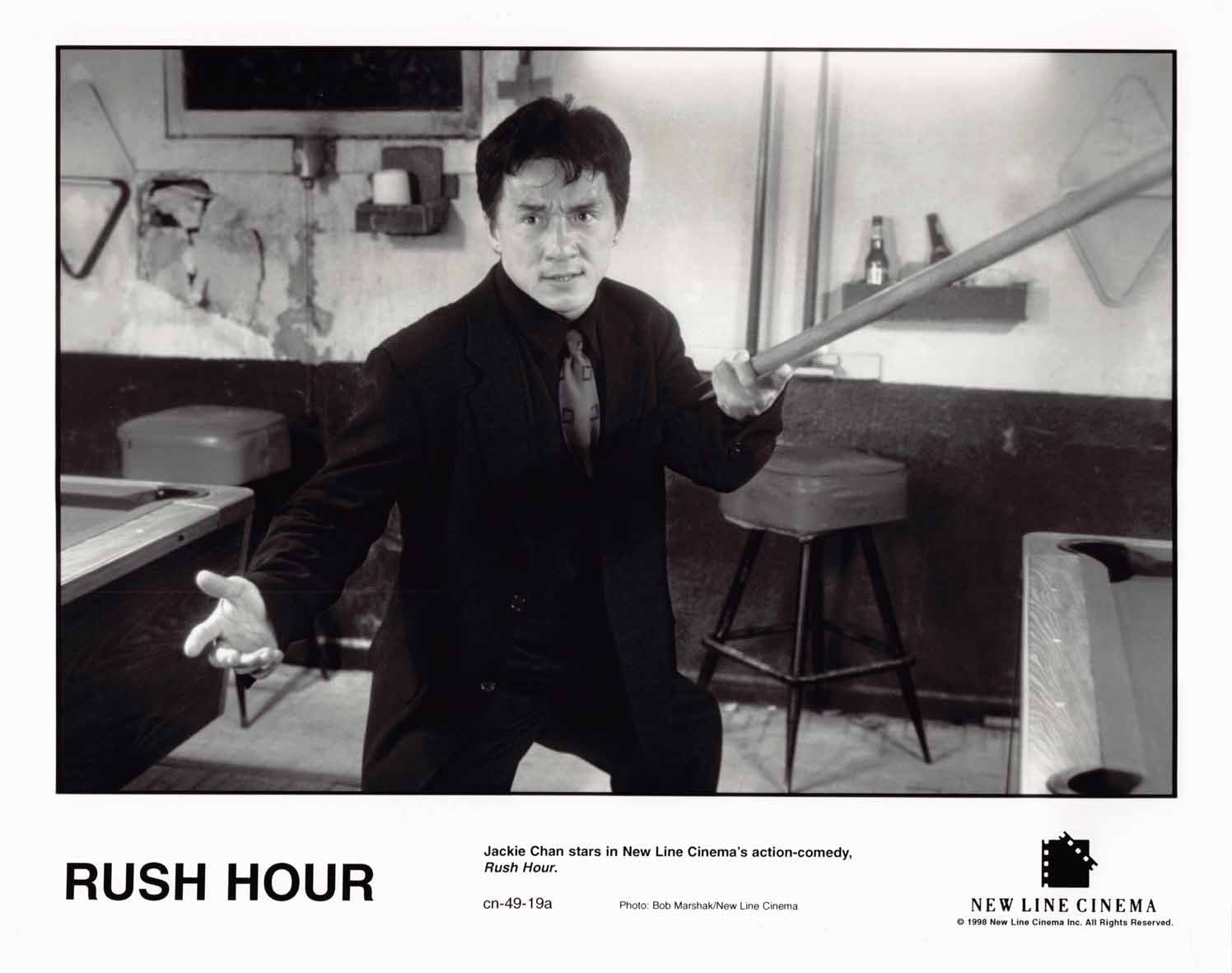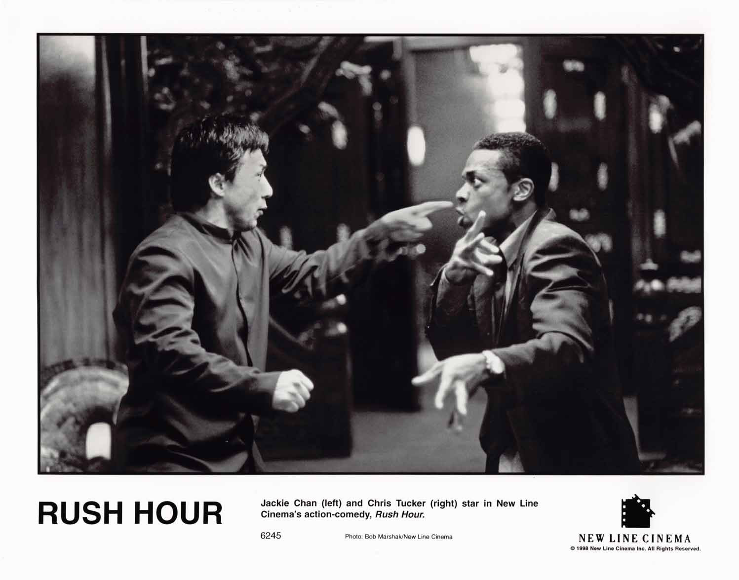Eleven (11) excellent condition 1998 vintage New Line Cinemas original promotional 8x10 press photos for RUSH HOUR starring Chris Tucker, Elizabeth Pena and Jackie Chan. These were mailed out to media and theater chains promoting the upcoming release of the film.