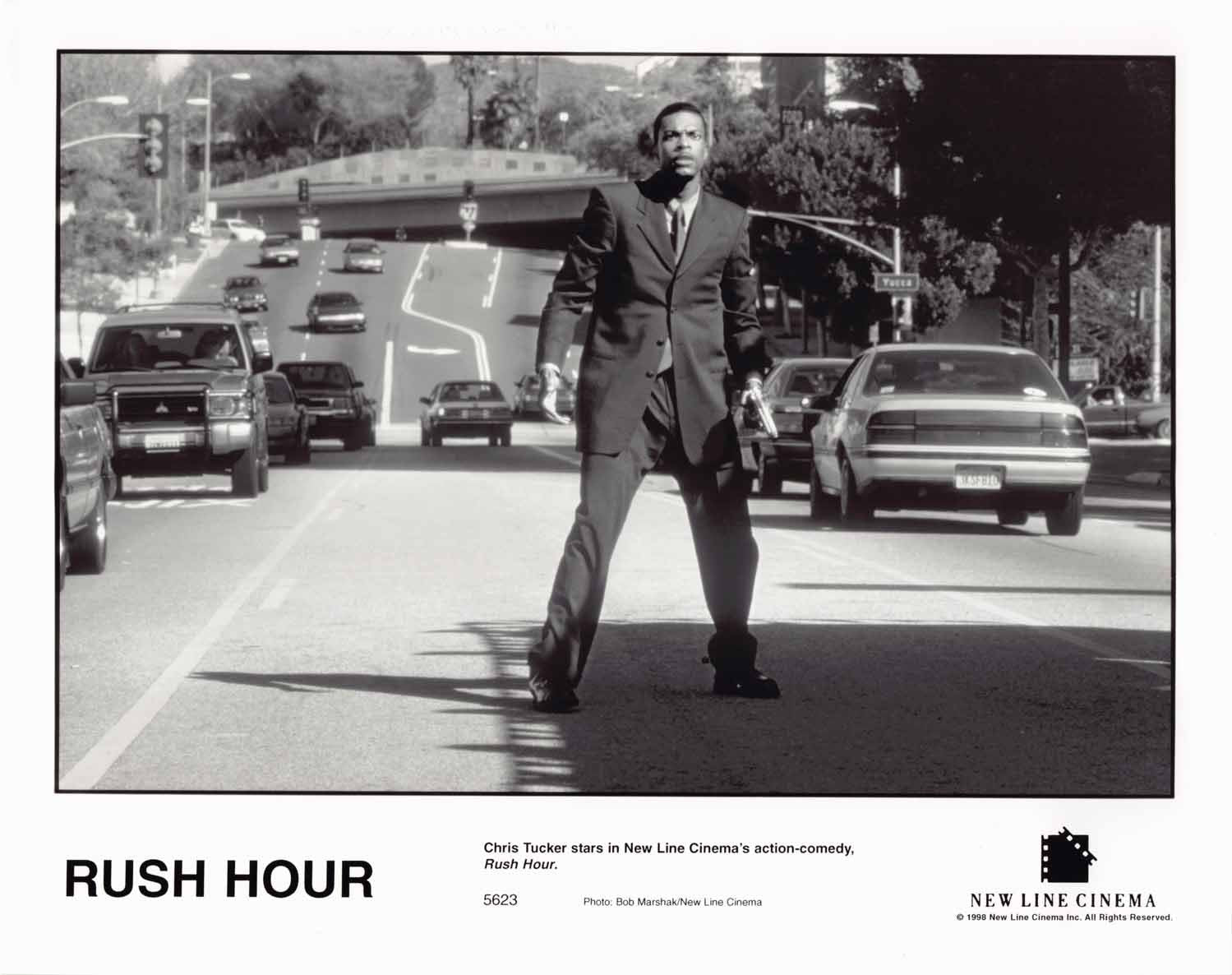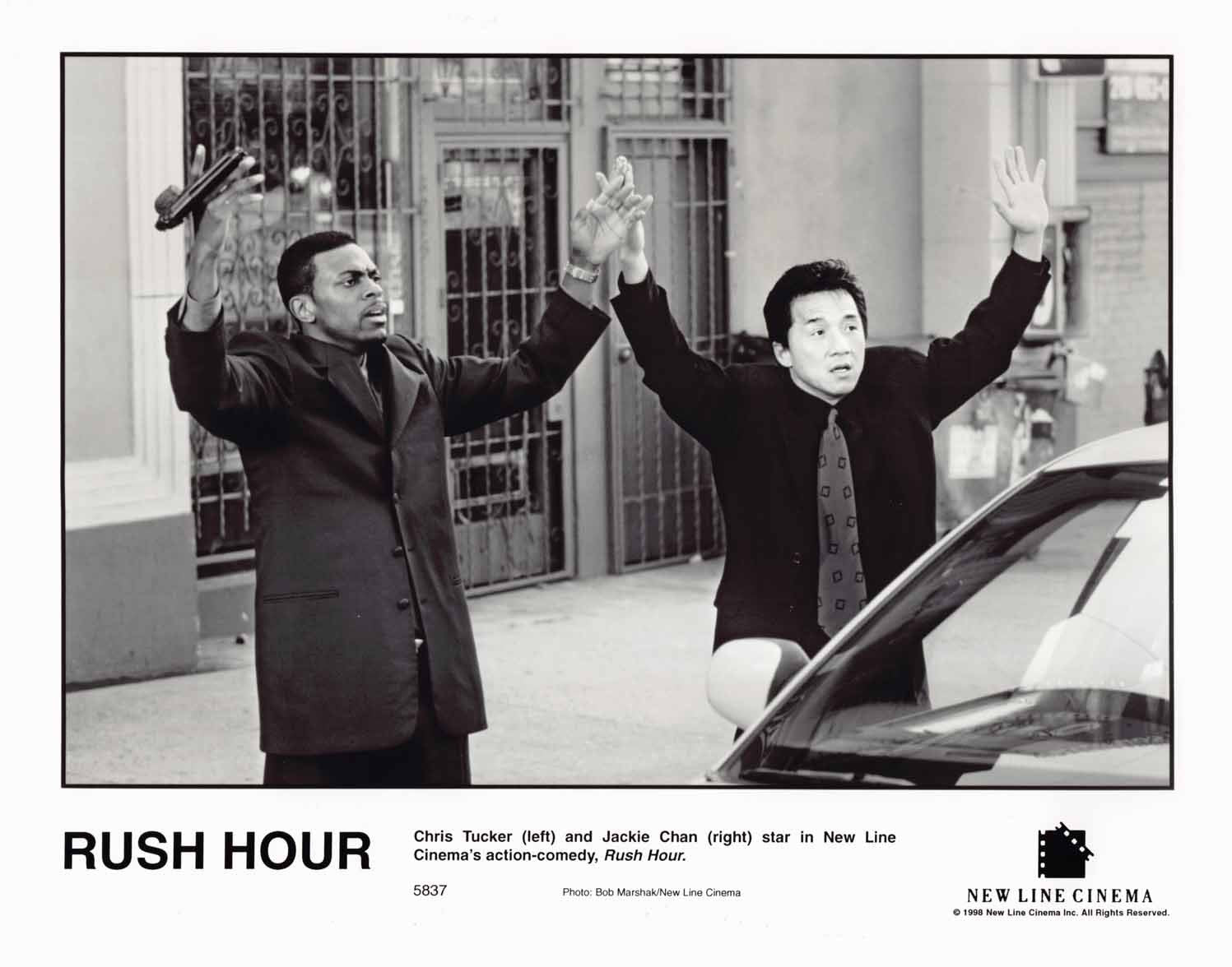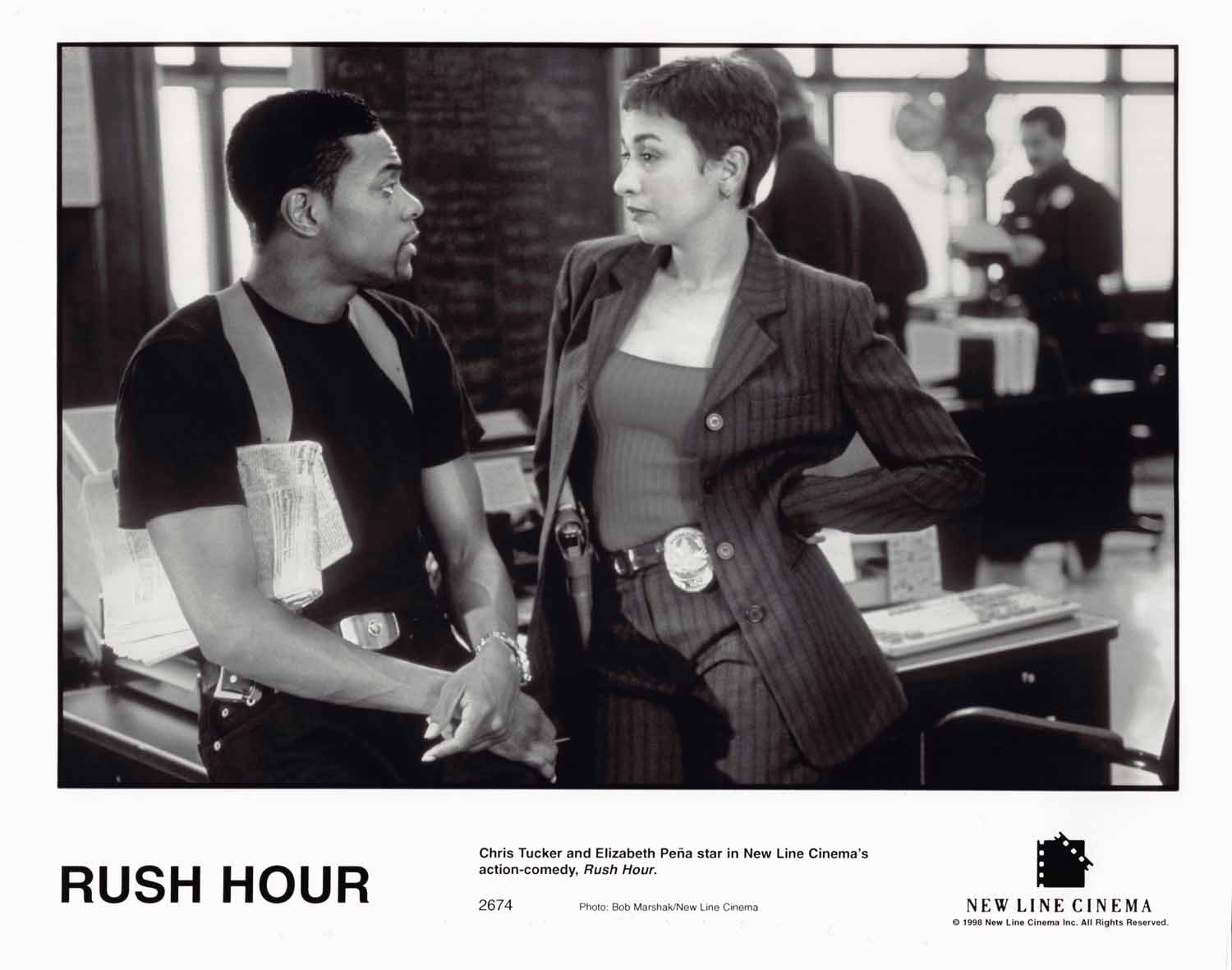 Eleven (11) excellent condition 1998 vintage New Line Cinemas original promotional 8x10 press photos for RUSH HOUR starring Chris Tucker, Elizabeth Pena and Jackie Chan. These were mailed out to media and theater chains promoting the upcoming release of the film.