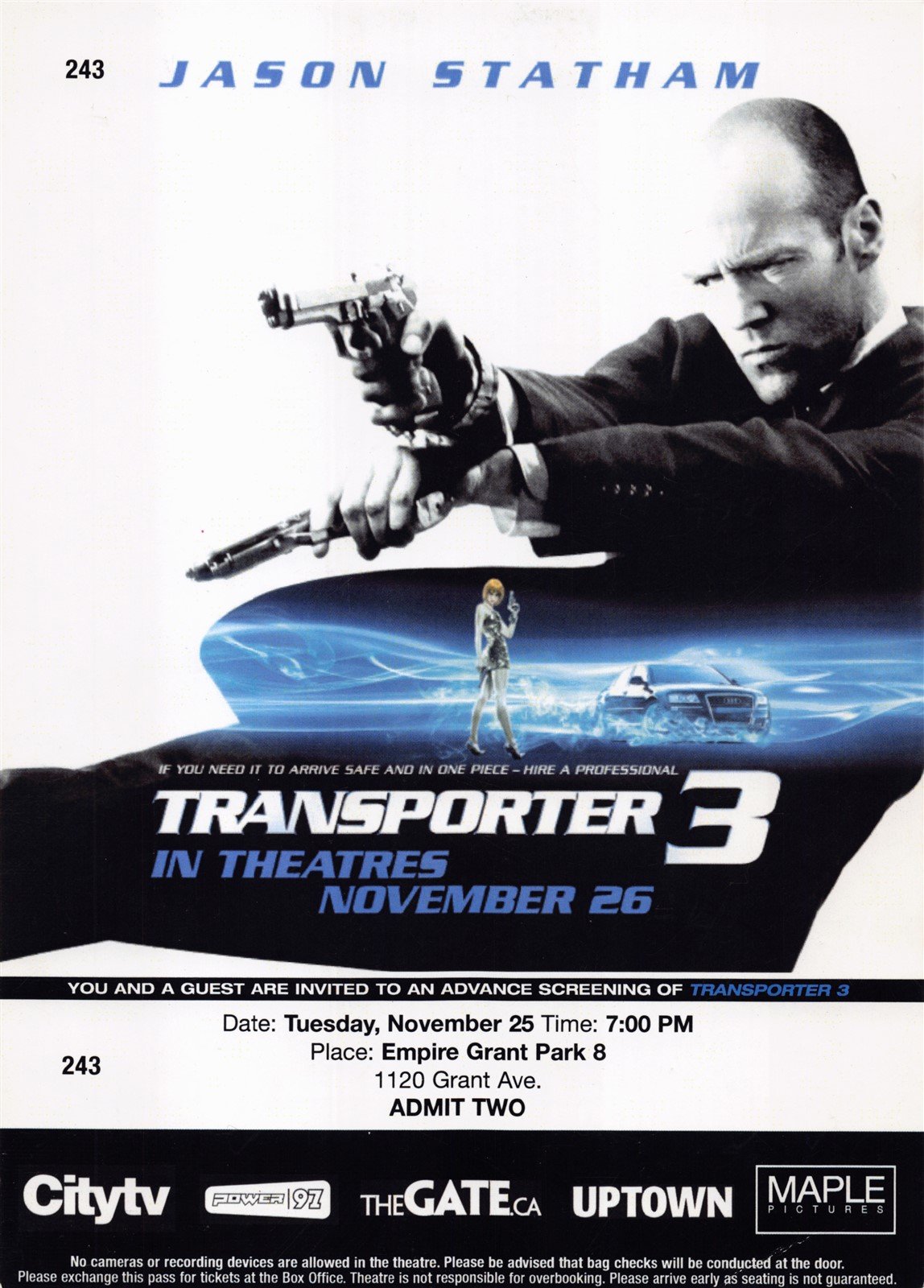Jason Statham TRANSPORTER 3 original premiere ticket 2008