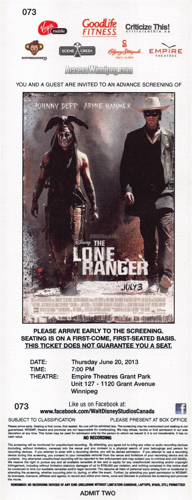 Johnny Depp THE LONE RANGER original premiere ticket 2013