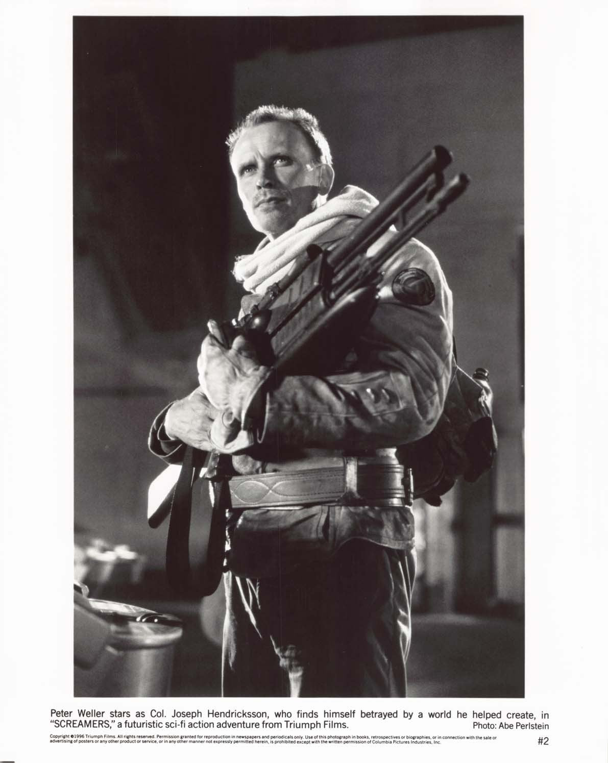 An excellent condition 1996 vintage Triumph Pictures original promotional 8x10 press photo for SCREAMERS starring Peter Weller. These were mailed out to media and theater chains promoting the upcoming release of the film.