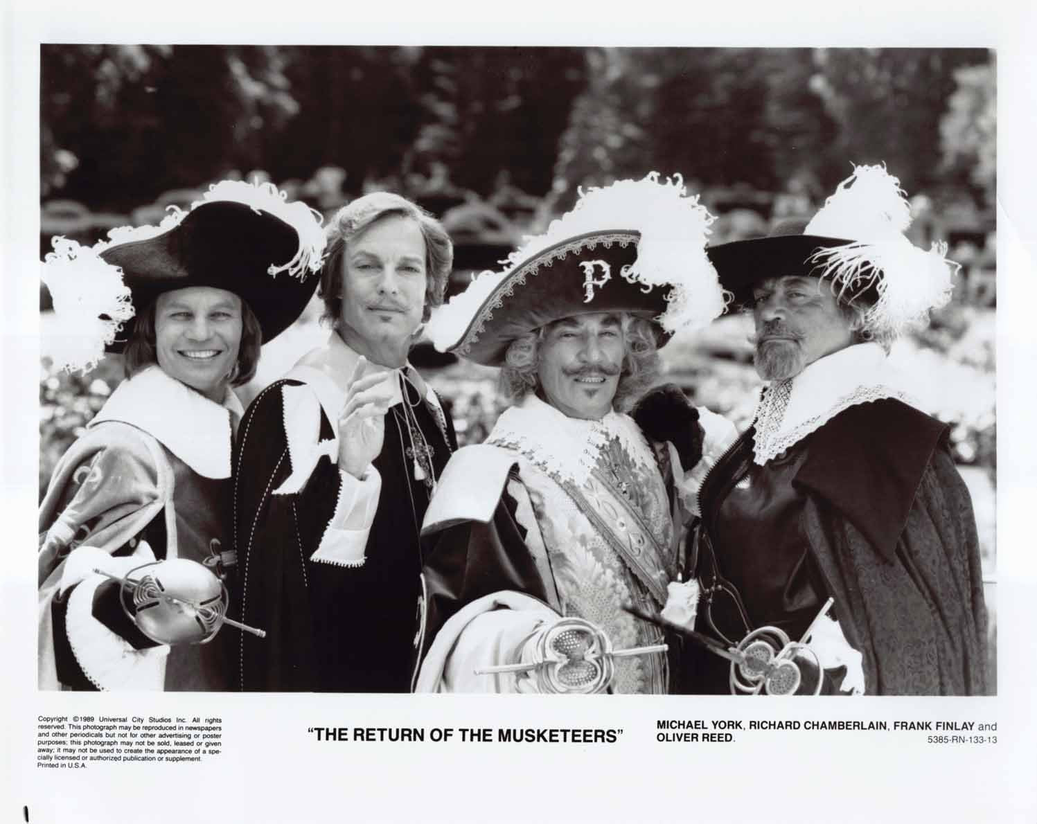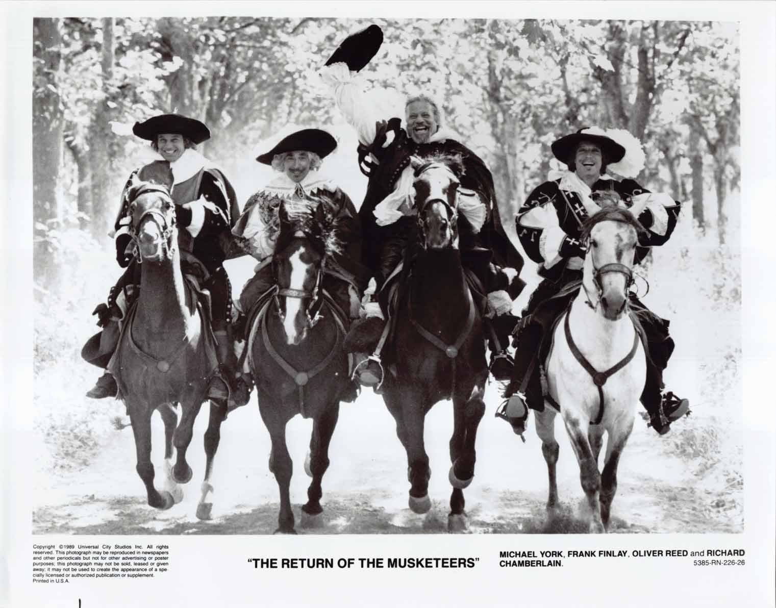 Two (2) excellent condition vintage Universal Pictures original promotional 8x10 press photos for THE RETURN OF THE MUSKETEERS starring Michael York, Frank Finlay, Richard Chamberlain and Oliver Reed. These were mailed out to media and theater chains promoting the upcoming release of the film.
