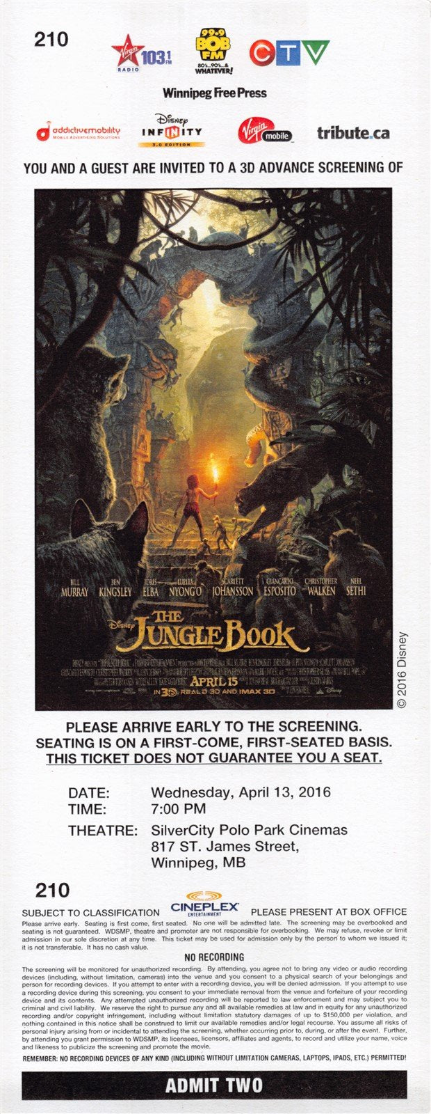 Scarlett Johansson Idris Elba JUNGLE BOOK Lupita Nyong'o premiere ticket 2016
