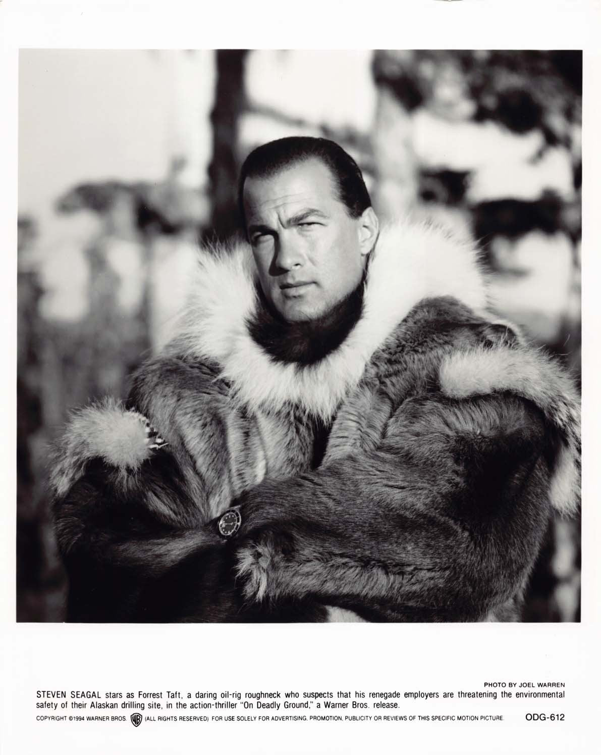 An excellent condition 1994 vintage Warner Bros. original promotional 8x10 press photo for ON DEADLY GROUND starring Steven Seagal. These were mailed out to media and theater chains promoting the upcoming release of the film.