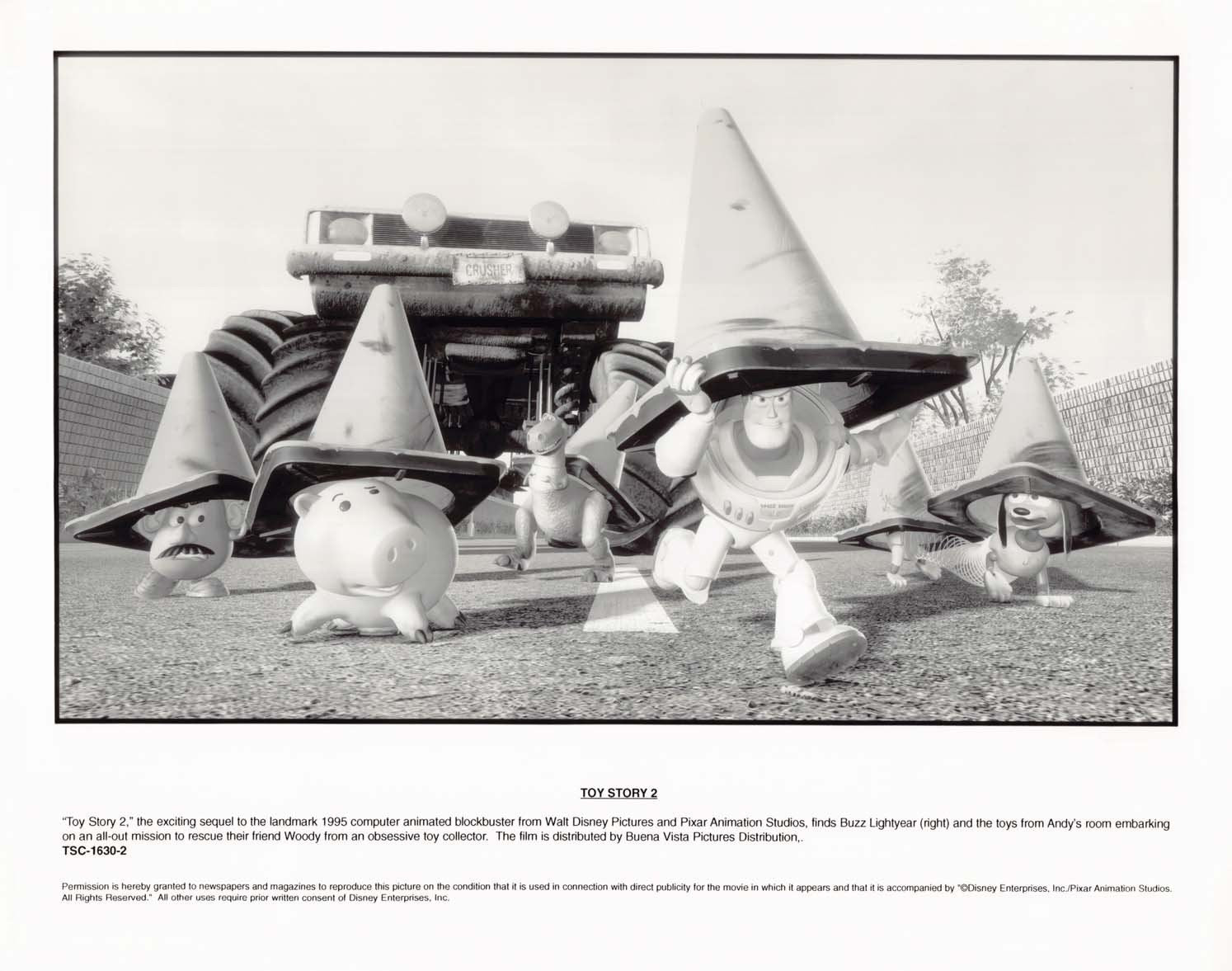 Two (2) excellent condition 1995 Pixar Studios original promotional 8x10 press photos for TOY STORY starring Tom Hanks and Tim Allen. These were mailed out to media and theater chains promoting the upcoming release of the film.