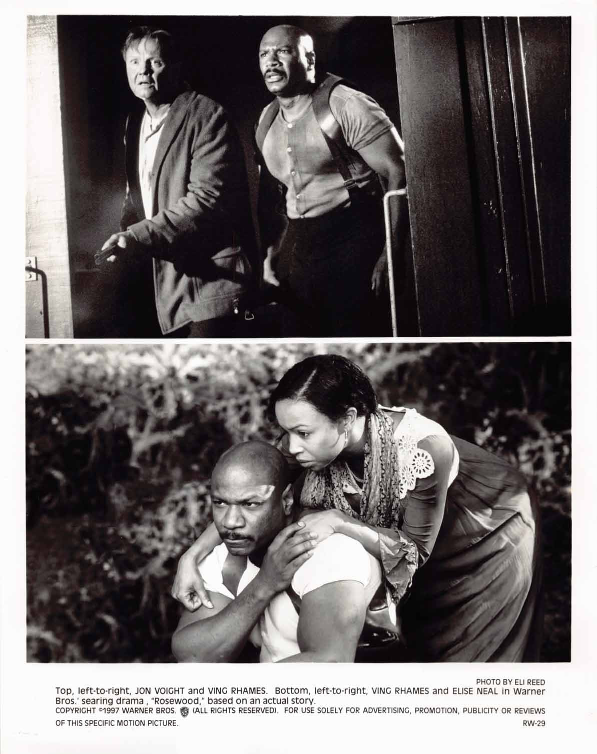 An excellent condition vintage Warner Bros. original promotional 8x10 press photo for ROSEWOOD starring Jon Voight, Elise Neal and Ving Rhames. These were mailed out to media and theater chains promoting the upcoming release of the film.