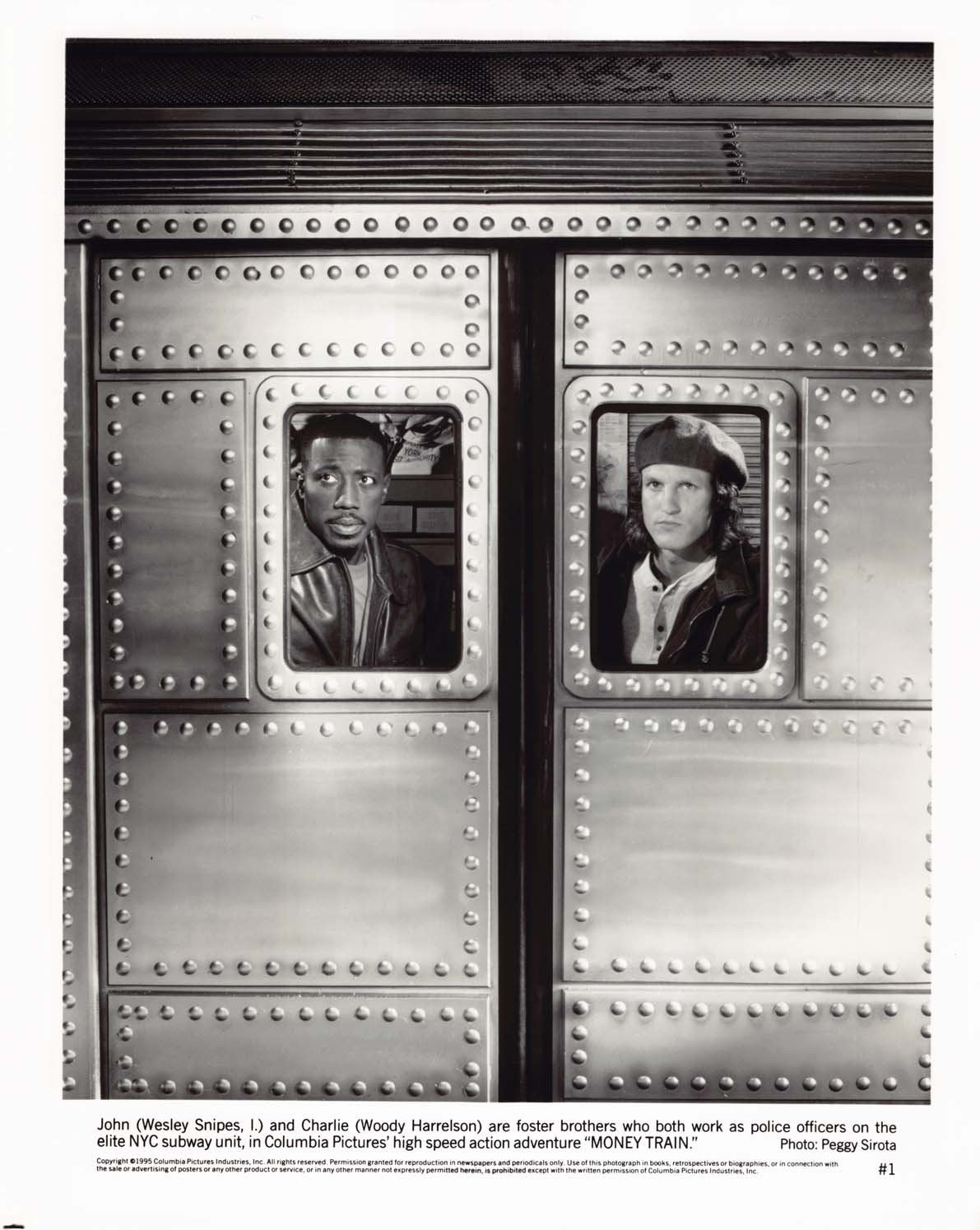 An excellent condition 1995 vintage Columbia Pictures original promotional 8x10 press photo for MONEY TRAIN starring Wesley Snipes and Woody Harrelson. These were mailed out to media and theater chains promoting the upcoming release of the film.